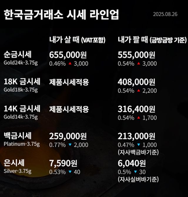순금(24K) : 매입가 65만 5000원 / 매도가 55만 5000원