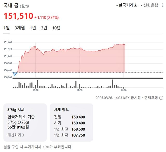 국내 금시세(금값)가 26일(한국 시각) 오후 하락세(전 거래일 대비)를 보이고 있다.