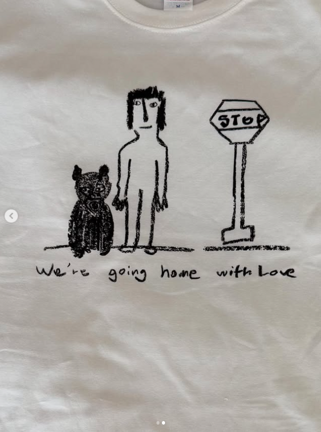 이번엔 값비싼 브랜드나 럭셔리 드레스가 아니라, 직접 슥삭 그린 듯한 티셔츠 한 장이다. 하지만 이 티셔츠에는 엄청난 ‘부가 기능’이 달려 있다. 바로 판매 수익이 전액 강아지들에게 후원된다는 것. 옷 한 장 입는 순간, 자동으로 선행을 완성하는 셈이다.