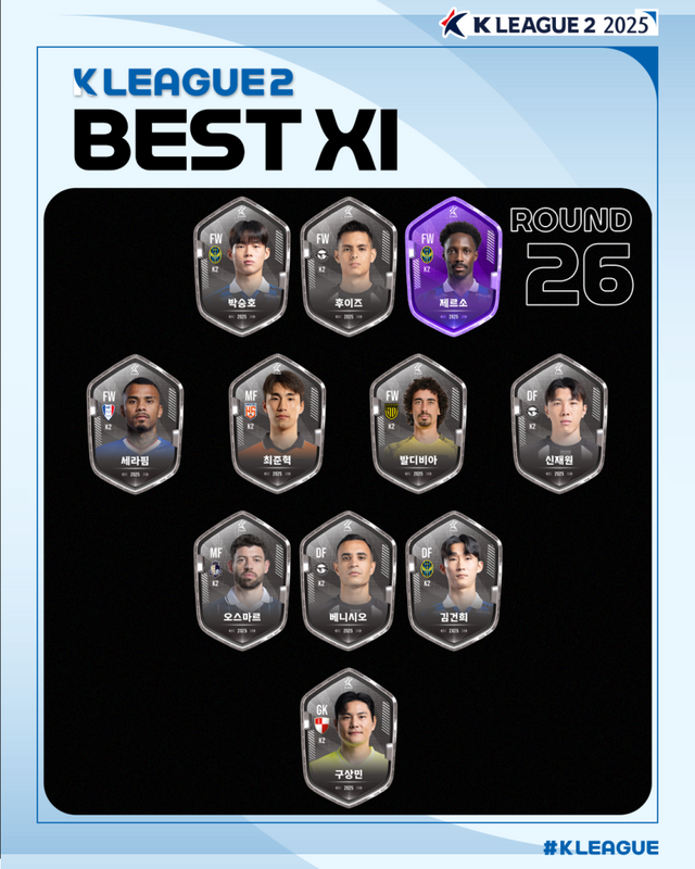 ‘하나은행 K리그2 2025’ 26라운드 MVP는 인천 유나이티드 제르소다.