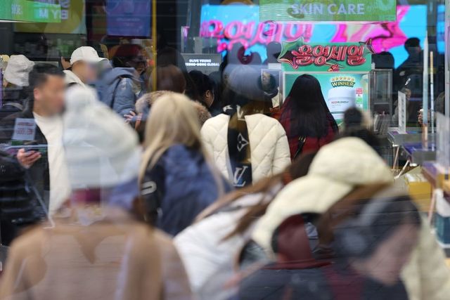 올리브영 명동점에서 외국인 관광객들과 쇼핑객들이 물건을 고르고 있다. / 뉴스1