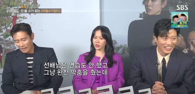 하지만 이병헌은 이야기를 멈추지 않았다. 그는 "(연습에) 사실 몇 번 안 갔는데, 예진 씨는 거의 매일 왔다는 거예요. '우와 진짜 얼마나 잘 추려고 저렇게까지 열심히 하나'. 그런데 현장에서 춤을 리허설하는데 하나도 안 맞는 거예요"라고 했다.