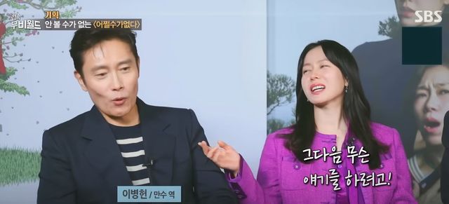 손예진이 함께 출연한 아역배우들 관련 질문에 '모성애'를 언급하며 "아이를 낳고 첫 작품이어서 아이랑 있는 나의 모습이 되게 자연스러웠다"라고 하자, 옆에 있던 이병헌이 "제가 촬영장에서 본 모습은 좀 다른 모습이었다"라는 말을 한 것이다.
