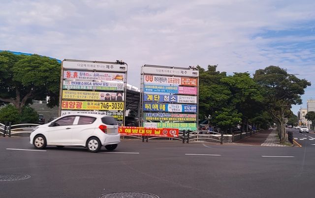 26일 제주도에 따르면 7월 말 기준 도내 현수막 지정 게시대는 제주시 250개, 서귀포시 205개로 집계됐다. 읍면동 등에서 도민들에게 행정 정보를 알리는 행정용 게시대가 191개, 각종 단체·업체 등에서 광고 목적의 현수막을 내거는 상업용 게시대가 264개다.