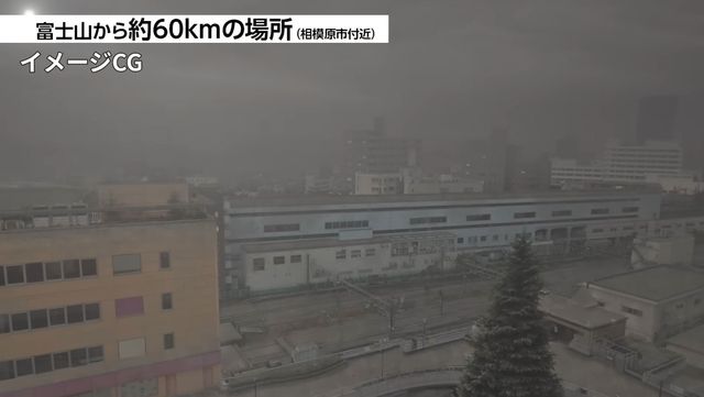 이렇게 쌓인 화산재는 도시 기능을 마비시킨다. 목조 가옥은 30㎝ 이상 화산재가 쌓이면 지붕 무게를 견디지 못하고 붕괴될 수 있다. 도로에는 불과 10㎝의 화산재만 쌓여도 자동차가 주행할 수 없으며, 비가 내리면 3㎝만으로도 바퀴가 미끄러져 차량 운행이 불가능해진다. 영상에는 신주쿠 도심을 달리는 차량들이 라이트를 켠 채 거북이걸음을 하는 모습이 담겼다.