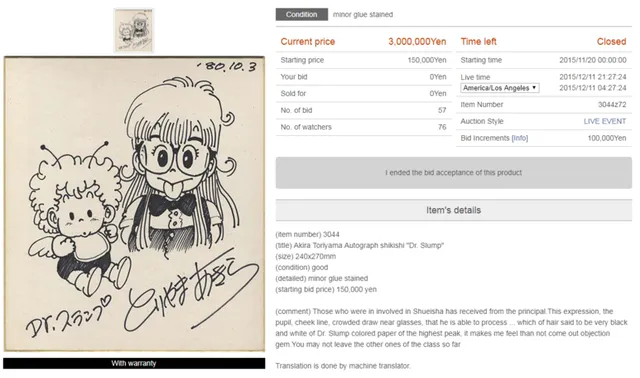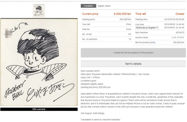 드래곤볼의 작가 만신 토리야마 아키라의 사인