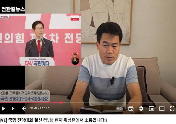 전 씨는 26일 자신의 유튜브 채널 ‘전한길뉴스’ 라이브 방송에서 국민의힘 전당대회를 생중계로 시청하며 장 후보 당선 발표 순간에 “국민의힘 해체 위기에서 보수의 희망을 봤다”며 안도했다.