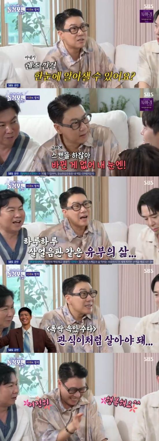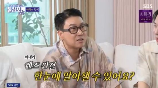 이상민 역시 "나도 사과할 일이 이렇게 많을 줄 몰랐다"면서 "'오늘 달라진 거 없어?'라고 물어보는데, 아내가 렌즈를 낀 걸 한눈에 알아챌 수 있냐. 아무리 봐도 달라진게 없는거다. 뒤늦게 렌즈인 걸 맞췄다"면서 힘든 표정을 지으면서 "대한민국 남편은 관식이처럼 살아야한다"고 말해 웃음을 자아냈다.