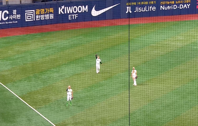 그런데 이 3명 중 그 누구도 공을 잡지 못했다. 그렇다고 공이 그라운드에 떨어진 것도 아니었다. 고척돔 천장에 끼었던 공은 심판진이 인정 2루타를 선언한 뒤에 파울 지역에 떨어졌다.
