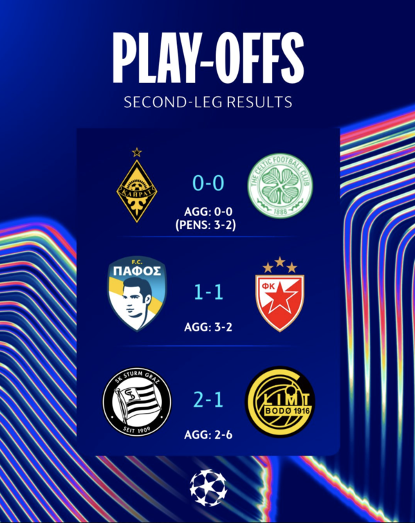 27일(한국시간) 오스트리아 그랏츠의 리베나워 스타디움에서 2025-2026 UCL 플레이오프 2차전을 치른 보되글림트가 슈투금그라츠에 1-2로 패했다. 하지만 1차전 5-0 승리를 바탕으로 1, 2차전 합산 6-2로 승리하며 대회 본선행을 확정했다.