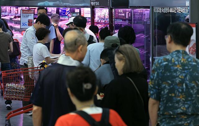 고기를 구매하기 위해 줄 선 고객들. 자료 사진 / 뉴스1