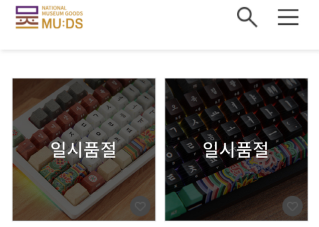 국립중앙박물관 '뮷즈' 홈페이지 내 단청 키보드 품절 현황. ⓒ 앱코