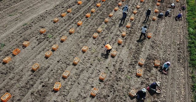 경북 고령군 개진면 한 감자밭에서 외국인 계절근로자들이 부지런히 감자를 수확하고 있다. / 뉴스1