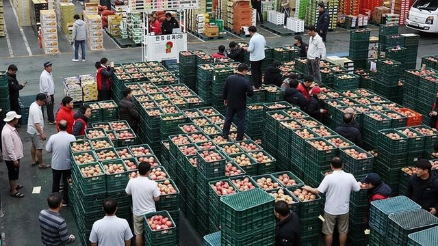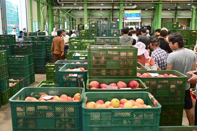 기사 이해를 돕기 위해 AI로 생성한 사과 경매장 이미지