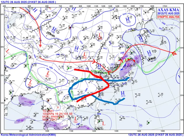 2. 우리나라에 직접 영향은 없겠는데 이동성 고기압 효과로 낮에는 뜨겁고 밤에는 식는 초가을 날씨가 2~3일 정도 이어지겠음(8월 27일 기준)