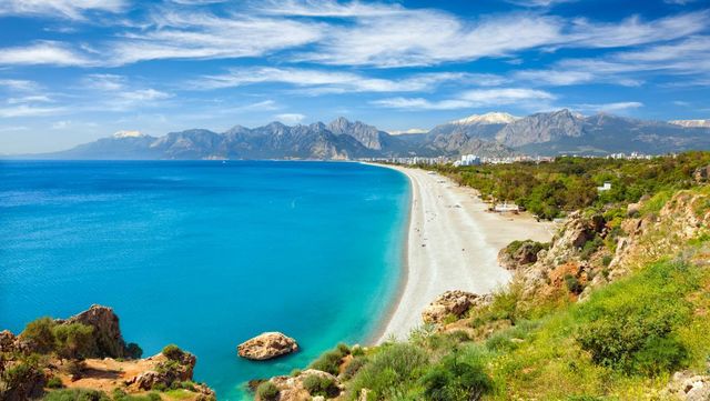 현지인과 관광객 모두 즐겨 찾는 여름 휴양지이자 7km 넘게 펼쳐진 청정 해변으로 알려진 콘야알티 해변이다. 안탈리아 시내 서쪽, 토로스 산맥 아래 지중해와 맞닿은 곳에 위치한 이 해변은 바다 건너로는 푸른 지중해가 보이고, 뒤로는 웅장한 토로스 산맥이 보이는 환상적인 풍경을 자랑한다. 특히 국제 환경·안전 기준을 충족한 해변만 받을 수 있는 불루플래그(청정 해변 인증)를 보유하고 있다.