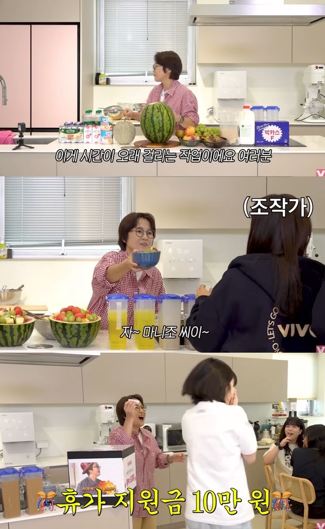 공개된 영상에서 CEO 송은이는 정성껏 손질한 과일로 화채를 준비해 직원들에게 직접 나눠주며 훈훈한 분위기를 자아냈다.