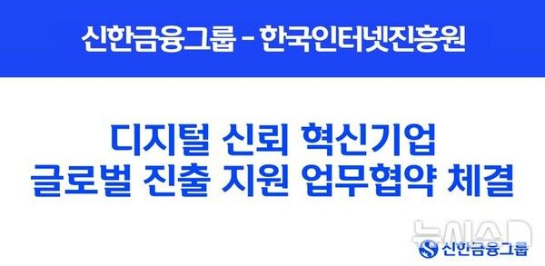 신한금융그룹은 한국인터넷진흥원과 '디지털 신뢰(Digital Trust)' 서비스 분야 스타트업의 육성과 글로벌 진출을 지원하기 위한 업무협약을 체결했다고 27일 밝혔다.