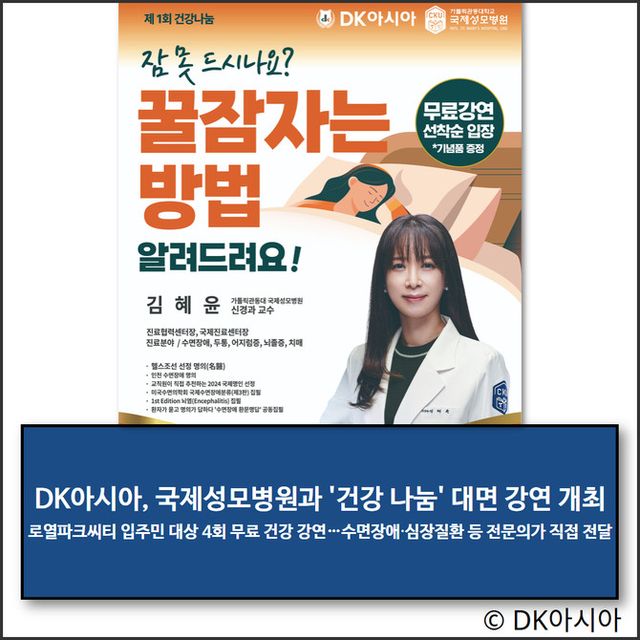 첫 강연은 오는 29일 오후 3시, 신검단 로열파크씨티Ⅱ 주택전시관에서 열린다. 강연자는 국제성모병원 신경과 김혜윤 교수다. 이후 9월에는 심장내과 교수가 환절기 심장질환에 대해, 10월에는 소아청소년과 교수가 소아 응급상황 대처법을, 11월에는 신경외과 교수가 뇌혈관 질환과 뇌동맥류의 예방 및 관리법을 주제로 강연을 이어간다.