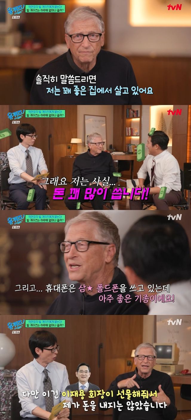 27일 방송된 tvN ‘유 퀴즈 온 더 블럭’(이하 ‘유퀴즈’)에는 마이크로소프트 공동 창업자 빌 게이츠가 출연했다. 이날 27살에 2억 6천만 원을 모은 ‘자기님’ 곽지현 씨는 빌 게이츠에게 “하루에 얼마를 쓰냐”고 질문했다.