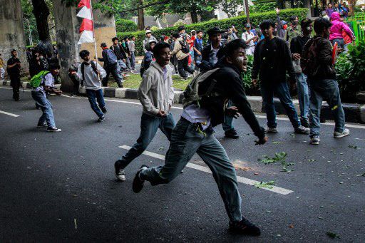 26일(현지시간) 안타라 통신 등 현지 매체에 따르면 전날 자카르타 남부 스나얀에 있는 국회 의사당 인근에서 대학생과 노동자 등 수천 명이 대규모 집회를 열었다.