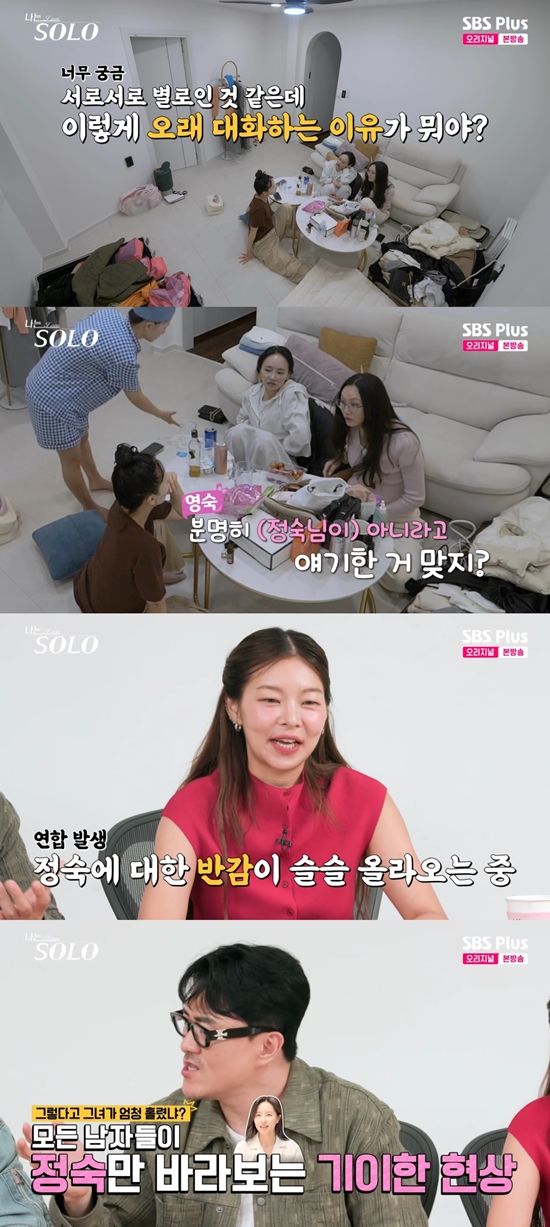 또 옥순이 "나 그게 오늘 보였다"라고 말하자, 영자는 "처음부터 그랬다. 첫인상 선택 때 (정숙에게) 몰렸다"라고 설명했다. 옥순은 "나는 몰랐다. 첫인상 선택 때부터 이어진 거면 얼마나 좋은 거냐. 대박이다"라고 전했다.