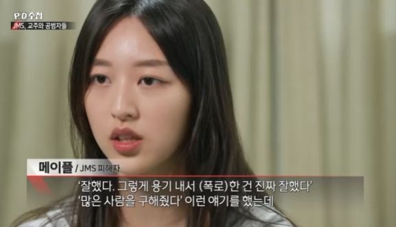 메이플은 지난 26일 자신의 계정에 “저는 28살 때, 즉 3년 전에 JMS를 고소했는데 제 얼굴, 실명, 그리고 피해 사실까지 모두 공개했다”며 “그래서 그 40년 역사를 가진 큰 집단을 무너뜨릴 수 있었다”고 밝혔다.