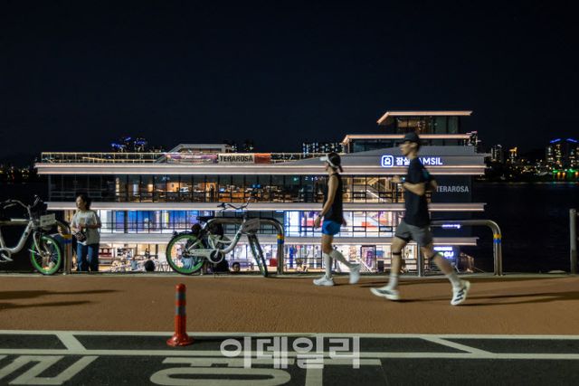 또한, 선착장 건물에는 스타벅스, 테라로사 등 유명 프랜차이즈 카페와 바이닐 한강 등 독특한 컨셉의 카페가 입점해 한강을 조망하며 음료와 음악을 즐길 수 있다. 대표적으로 뚝섬 선착장에 위치한 바이닐 한강은 LP 음악을 감상할 수 있는 공간으로 강변의 낭만을 더한다. 여의도 선착장 인근 국회 사랑재 옆에 위치한 ‘강변서재’도 조용한 분위기 속에서 한강을 내려다볼 수 있는 명소로 소개된다.