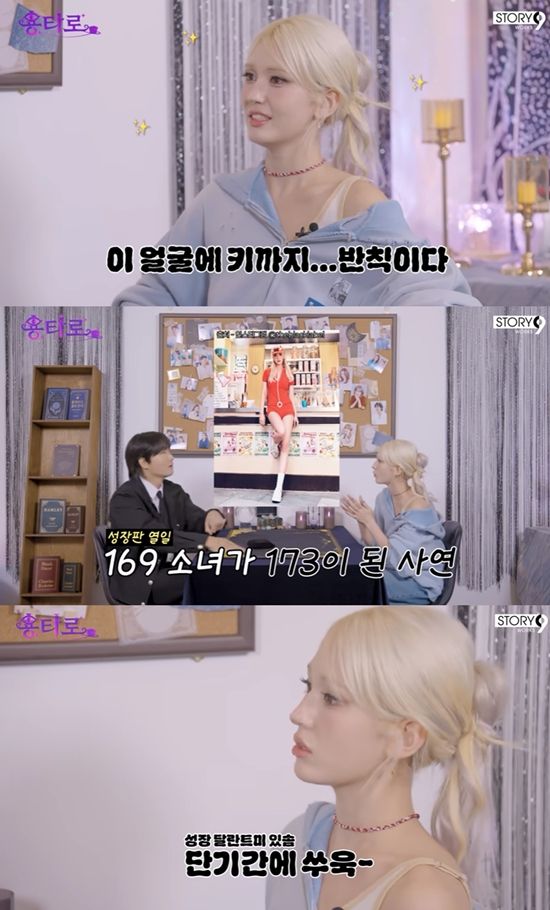전소미는 "저 키가 진짜 크다. 169cm였는데 필라테스하고 173cm가 됐다. 목이 뽑혀서 그런 것 같다"고 말했다.