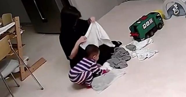엄마가 정성껏 포개 놓은 빨래 하나 집어 든 아이. 엄마는 '서랍에 넣어주려나 보다' 싶어 빨래 한 벌을 더 쥐여줬다.