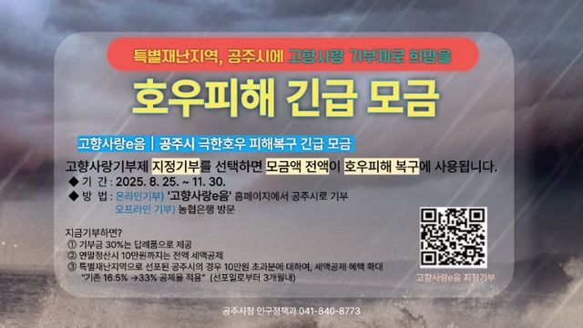 특히, 특별재난지역으로 선포된 공주시는 기부 참여자에게 확대된 세액공제 혜택을 제공한다.