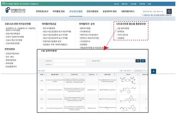 뉴시스 보도에 따르면, 식익처는 의약품안전나라에 '니트로사민류 불순물 통합정보방'을 개설하고 관련 정보를 제공한다고 28일 밝혔다.
