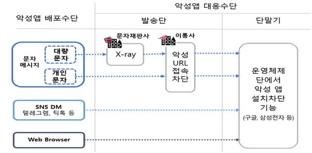 앞으로 이용자 휴대전화에 악성앱이 설치되지 않도록 문자사업자와 이통사, 개별 단말기에 이르는 3중 차단체계가 구축된다.