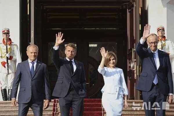뉴시스 보도에 따르면, 폴리티코, 도이체벨레, TVP 등에 따르면 프리드리히 메르츠 독일 총리, 에마뉘엘 마크롱 프랑스 대통령, 도날트 투스크 폴란드 총리는 27일(현지 시간) 몰도바 키시나우를 찾아 마이아 산두 대통령을 만났다.