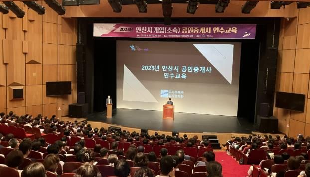 [와이뉴스] 안산시는 지난 27일 안산문화예술의전당에서 공인중개사 400여 명을 대상으로 안전한 부동산 중개문화 정착을 위한 ‘2025년 공인중개사 연수 교육’을 진행했다고 28일 밝혔다.
