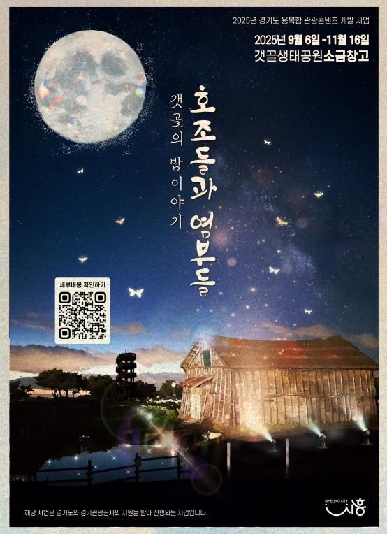 주요 콘텐츠는 ▲시흥의 대표 관광지 갯골의 밤을 배경으로 ‘갯골 3색 생태체험’ ▲염부들의 실제 이야기를 담은 관객 참여형 ‘소리마당극’ 등으로 참가자들은 마치 그 시대로 돌아간 듯한 생생함을 경험할 수 있다. 특히, 염판 위에서 소원을 담은 등을 띄우는 행사는 갯골의 아름다운 야경과 어우러져 잊지 못할 장관을 선사할 예정이다. 본 콘텐츠는 6~10세 자녀를 둔 가족 대상으로 개발됐다.