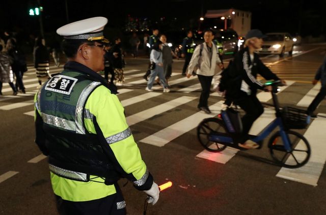 2024 서울세계불꽃축제가 끝난 후 서울 여의도에서 경찰이 시민들의 귀가를 돕고 있다. / 뉴스1