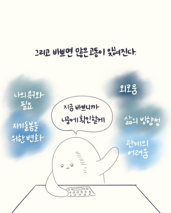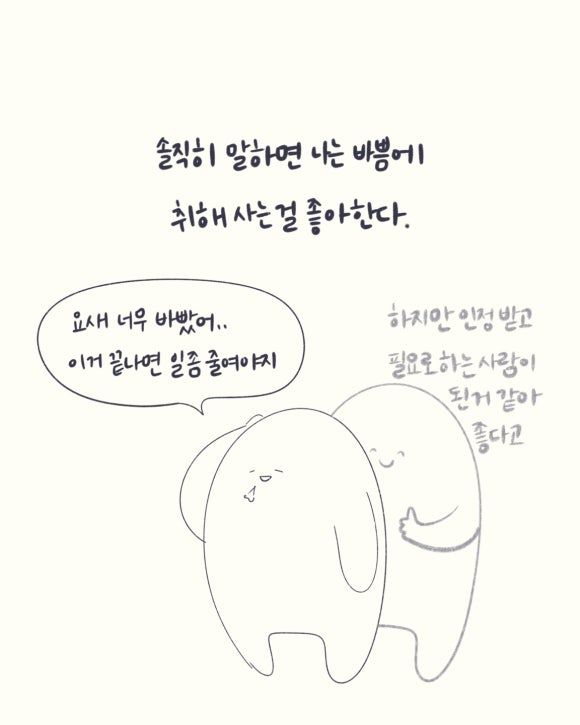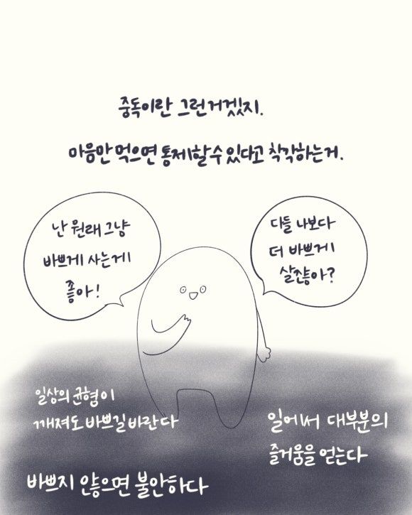 박사 졸업하고 여유 시간이 많아지니 깨달았다. 나는 꼭 돈 버는 일이 아니더라도, 바쁜 것 자체에 취해있는 걸 중독적으로 좋아하는 사람이라는 걸.