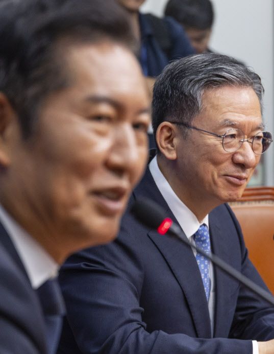 현역 국회의원인 정성호 법무부 장관은 28일 인천 운서동 파라다이스시티호텔에서 진행된 더불어민주당 2025 정기국회 국회의원 워크숍에 참석해 기자들과 만나 ‘검찰 개혁을 두고 당과 이견이 나오고 있다’는 지적에 “당과 이견이 없다”고 잘라 말했다.