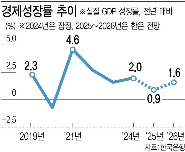 28일 한은이 제시한 8월 수정 경제전망에 따르면 올해 국내총생산(GDP) 성장률 전망치는 종전 대비 0.1%포인트 상향한 0.9%로, 내년은 종전과 같은 1.6%로 집계됐다. 시장이 주목한 내년도 성장률을 다소 보수적으로 제시한 점이 눈에 띈다. 김웅 한은 부총재보는 “향후 성장 흐름은 내수 중심의 회복세가 이어지는 가운데 수출은 미국 관세 영향이 점차 확대되면서 둔화할 것”으로 내다봤다.