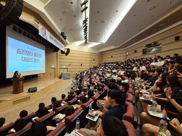 이날 수영 국가대표 출신 임다연 목포해양대 교수가 ‘승리보다 중요한 대표의 품격’을 주제로 강연을 펼쳤다.