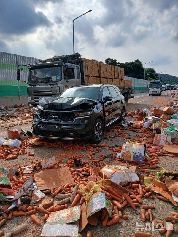 뉴시스 보도에 따르면, 사고 충격으로 화물차에 실려있던 당근 약 7t이 반대편 차선으로 쏟아져 다른 차량 2대가 충돌하는 등 2차 사고로 이어졌다.