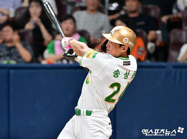3회말 송성문의 홈런으로 키움이 다시 한 점을 따라붙었다. 선두타자로 들어선 송성문은 폰세의 초구 직구, 볼이 된 2구 슬라이더를 지켜본 뒤 3구를 걷어냈고, 볼카운트 1볼-2스트라이크에서 폰세의 4구 153km/h 직구를 받아쳐 좌측 담장을 넘어가는 솔로 홈런을 만들어냈다. 송성문의 시즌 24호 홈런으로, 점수는 2-6.
