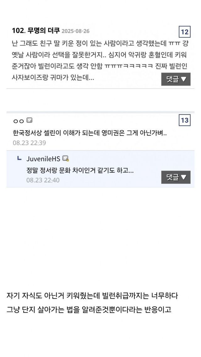 근데 한국에선 이해할만하다는 셀린 구간을 해외에선 우르르 야유까지 하는거보면 확실히 정서 차이가 있는듯함