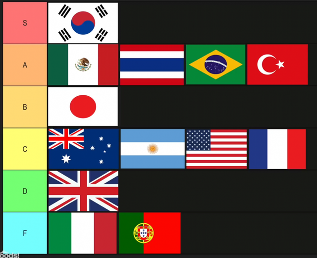 대상국가는 대한민국, 멕시코, 터키, 브라질, 일본, 호주, 아르헨티나, 미국, 프랑스, 이탈리아, 포르투갈 총 13개국