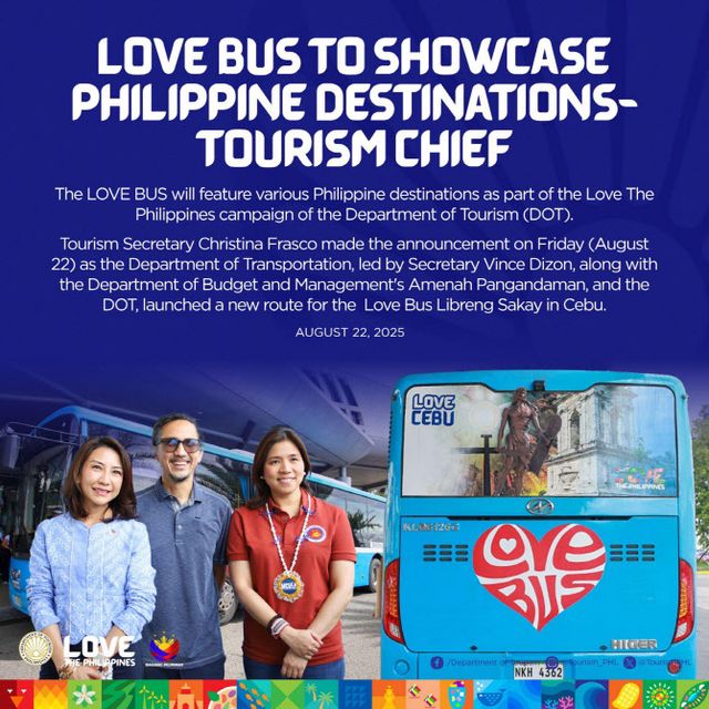 필리핀 관광부가 인기 휴양지인 세부에서 ‘러브 버스’(LOVE BUS) 운행을 시작했다. 지역별 주요 관광 명소를 알리는 ‘러브 더 필리핀’ 관광 캠페인의 일환으로 도입한 편의 서비스다. 주요 관광 명소를 정차하는 무료 순환 버스로 운행 노선은 밍글라닐라의 안조 월드와 SM 씨사이드 구간이다. 총 11대 버스가 투입되며 평일은 혼잡 시간대인 오전 6~9시와 오후 5~8시, 주말은 종일 서비스를 제공한다.