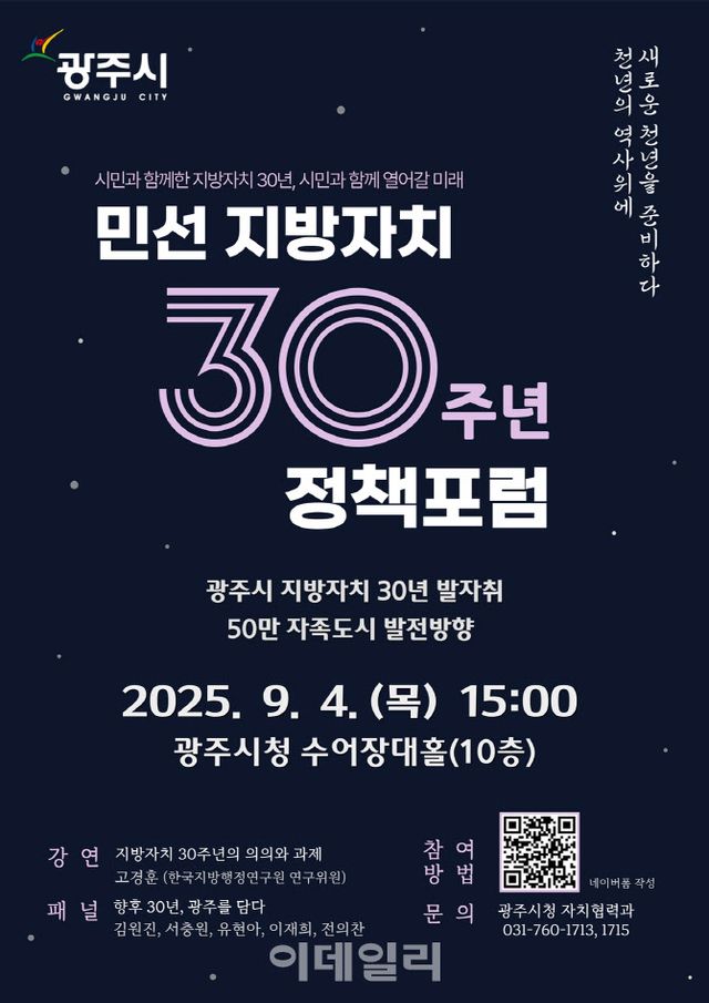 행사 1부에서는 고경훈 한국지방행정연구원 연구위원이 ‘민선 지방자치 30년의 의의’를 주제로 강연을 펼치며 지방자치의 가치와 미래 방향을 조망할 예정이다.