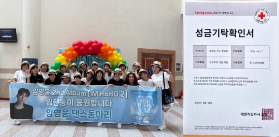 최근 임영웅 팬클럽 '댄스동아리'는 가수의 두 번째 정규 앨범 발매를 기념해 동아리 회원들이 자발적으로 모금한 230만 원을 대한적십자사 경기도지사에 전달했다고 밝혔다.