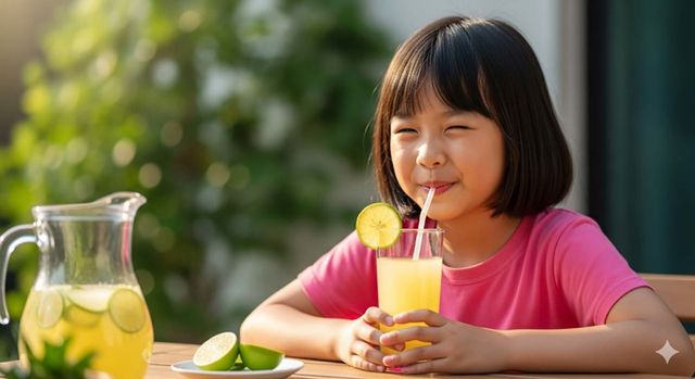 라임주스를 마시는 소녀. 글에 대한 이해를 돕기 위해 AI 툴로 만든 사진.