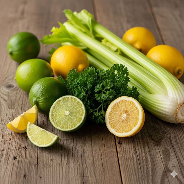 식물광화상을 일으킬 수 있는 식재료들. AI 툴로 만든 사진.